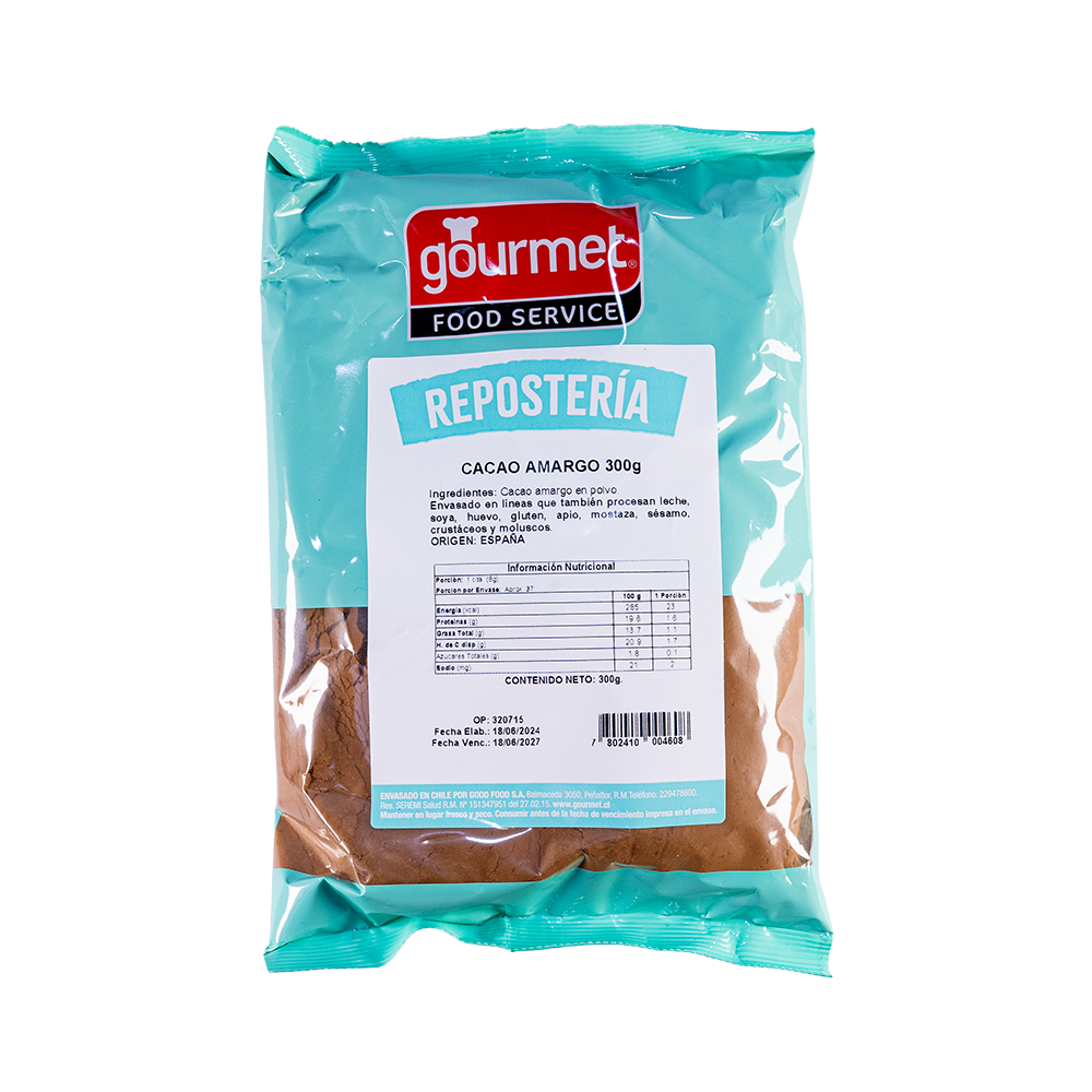 Cacao Amargo Gourmet 300g$4.990 Hay existencias - Cacao Amargo Gourmet 300g cantidad + Añadir al carrito SKU: 190000400 Categoría: Reposteria - Salsas - Chocolates Valoraciones (0) Valoraciones No hay valoraciones aún. Sé el primero en valorar “Cacao Amargo Gourmet 300g” Cancelar la respuestaTu dirección de correo electrónico no será publicada. Los campos obligatorios están marcados con *Tu puntuación * Puntuar… Perfecto Bueno Normal No está tan mal Muy pobre Tu valoración *Nombre * Correo electrónico * Guarda mi nombre, correo electrónico y web en este navegador para la próxima vez que comente. Productos relacionados Salsa Manjar Gourmet 1lt. $3.690 Añadir al carrito Cobertura Blanca Costa 1kg. $4.977 Añadir al carrito Panko Blanco Mayamoto kilo $2.990 Añadir al carrito Brochetas Natural Pack 24cm. 100un. $1.190 Añadir al carrito