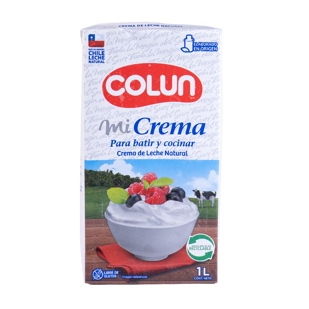 Crema De Batir Colun 1lt.$3.690 Hay existencias - Crema De Batir Colun 1lt. cantidad + Añadir al carrito SKU: 90000010 Categoría: Cremas - Leche Valoraciones (0) Valoraciones No hay valoraciones aún. Sé el primero en valorar “Crema De Batir Colun 1lt.” Cancelar la respuestaTu dirección de correo electrónico no será publicada. Los campos obligatorios están marcados con *Tu puntuación * Puntuar… Perfecto Bueno Normal No está tan mal Muy pobre Tu valoración *Nombre * Correo electrónico * Guarda mi nombre, correo electrónico y web en este navegador para la próxima vez que comente. Productos relacionados Leche Condensada Leche Sur 397gr. $1.290 Añadir al carrito Crema De Leche Nestle 236gr. $1.490 Añadir al carrito Leche Descremada Sin Lactosa Colun 1lt. $1.190 Añadir al carrito Leche En Polvo Entera Colun 900gr. $5.990 Añadir al carrito