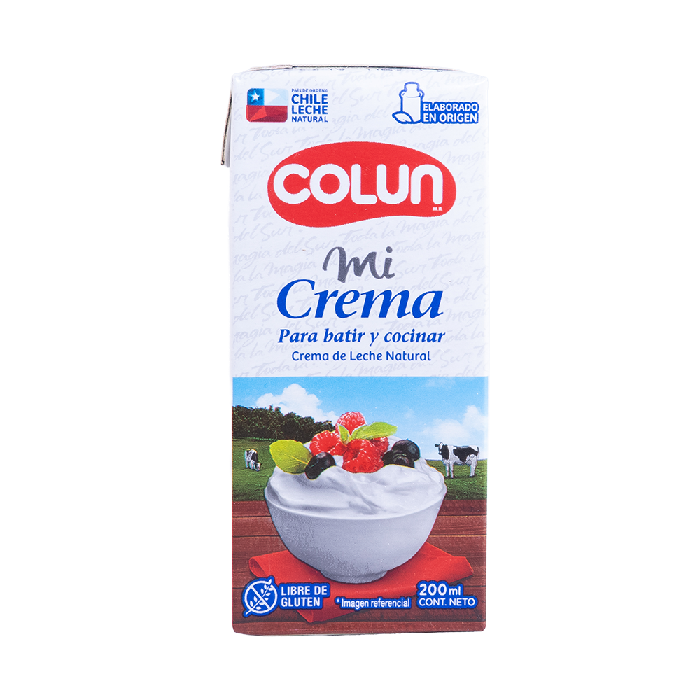 Crema De Batir Colun 200cc.$998 Hay existencias - Crema De Batir Colun 200cc. cantidad + Añadir al carrito SKU: 100000012 Categoría: Cremas - Leche Valoraciones (0) Valoraciones No hay valoraciones aún. Sé el primero en valorar “Crema De Batir Colun 200cc.” Cancelar la respuestaTu dirección de correo electrónico no será publicada. Los campos obligatorios están marcados con *Tu puntuación * Puntuar… Perfecto Bueno Normal No está tan mal Muy pobre Tu valoración *Nombre * Correo electrónico * Guarda mi nombre, correo electrónico y web en este navegador para la próxima vez que comente. Productos relacionados Leche Descremada Colun 1lt. $1.190 Añadir al carrito Crema De Batir Colun 1lt. $3.690 Añadir al carrito Crema De Leche Nestle 236gr. $1.490 Añadir al carrito Leche Descremada Sin Lactosa Colun 1lt. $1.190 Añadir al carrito